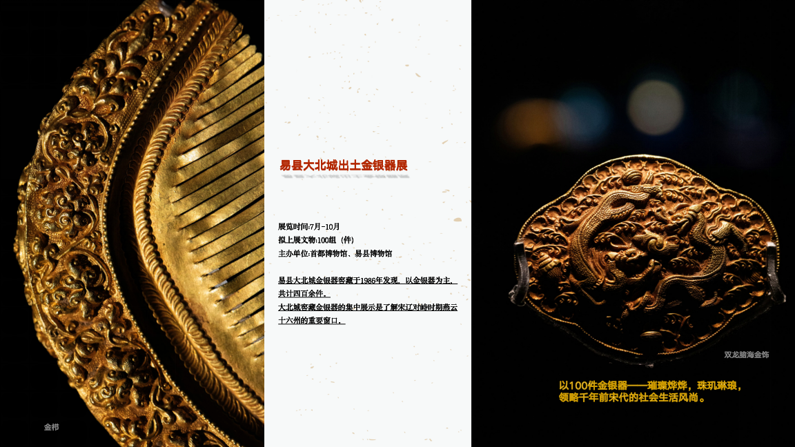 易县大北城金银器窖藏于1986年发现,以金银器为主,共计四百余件。大北城窖藏金银器的集中展示是了解宋辽对峙时期燕云十六州的重要窗口。