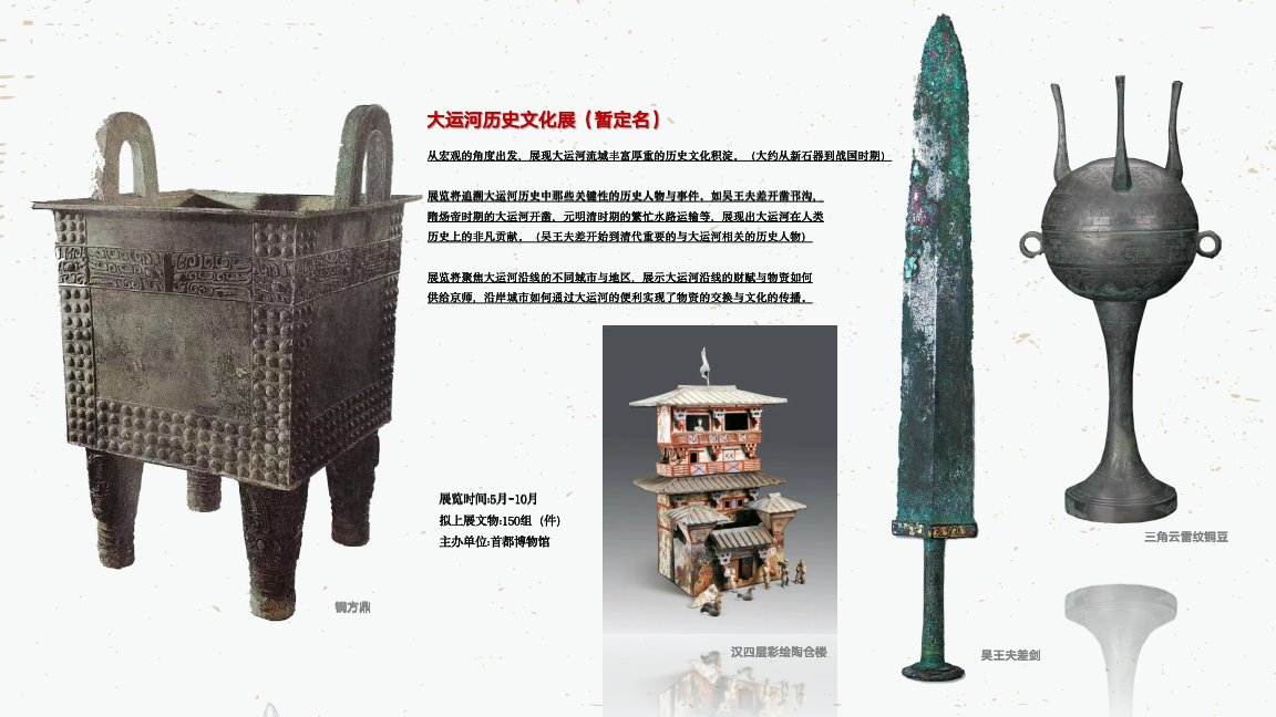 从宏观的角度出发,展现大运河流域丰富厚重的历史文化积淀。(大约从新石器到战国时期)