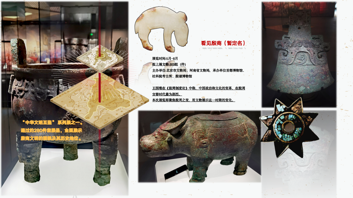 展览时间为2025年5月—8月,拟借展文物300组(件)。主办单位:北京市文物局、河南省文物局,承办单位:首都博物馆、社科院考古所、殷墟博物馆。